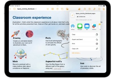 มอบหมาย โน้ต และเอกสารไปยังอุปกรณ์อื่นๆ ของ Apple ภายในห้องและเมื่อนักเรียนทำงานโปรเจ็กต์ร่วมกัน ก็สามารถส่งไฟล์และรูปภาพให้กันได้ทันทีเพียงคลิกไม่กี่ครั้ง